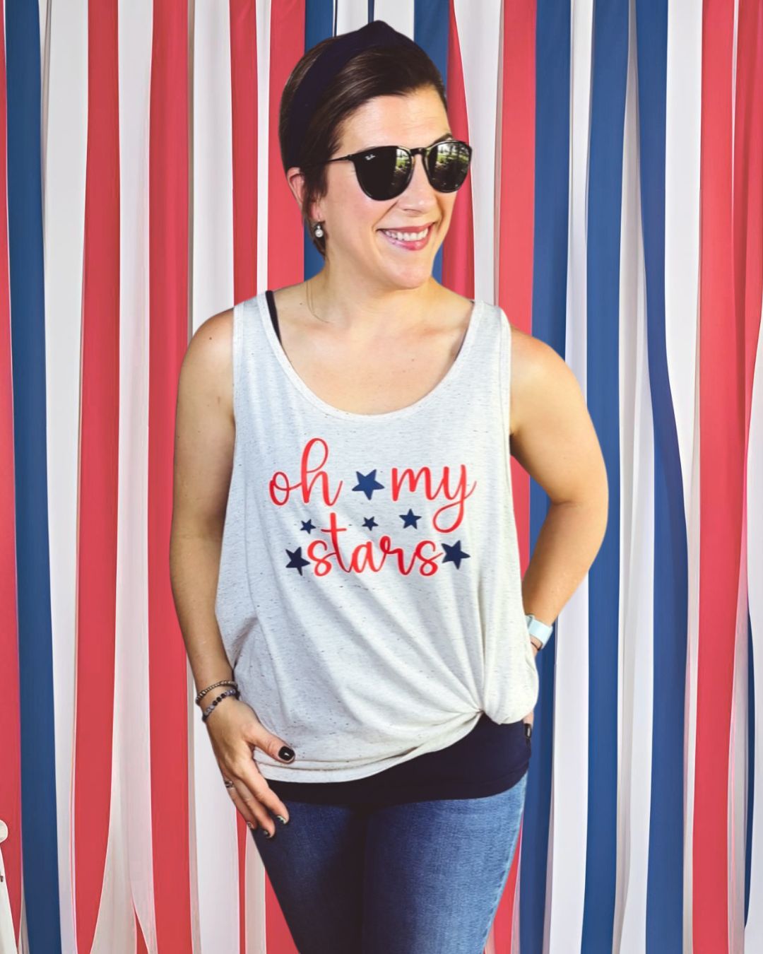 Add a little southern charm and a lot of star-spangled spirit to your wardrobe with this “Oh My Stars” unisex jersey tank top in the color Oatmeal! Whether you're headed to a 4th of July BBQ, summer concert, lake weekend, or fireworks show, this tank brings just the right mix of playful, patriotic energy.